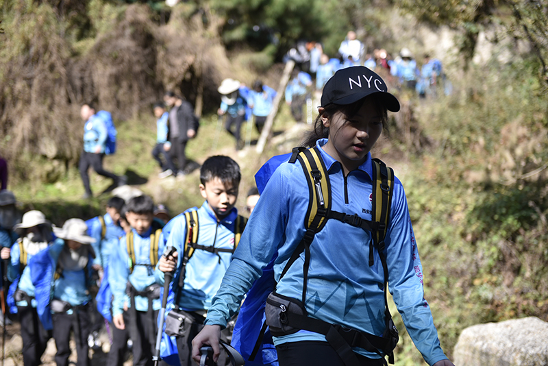 同学们结伴而行,共迎挑战。虽然山路崎岖蜿蜒,但孩子们没有人放弃攀登,踩稳踏实,互相鼓励,这一路充盈着欢声笑语。道路阻且长,勇敢安可知。跋涉不停歇,终将见繁花。没有比人更高的山,没有比脚更长的路。