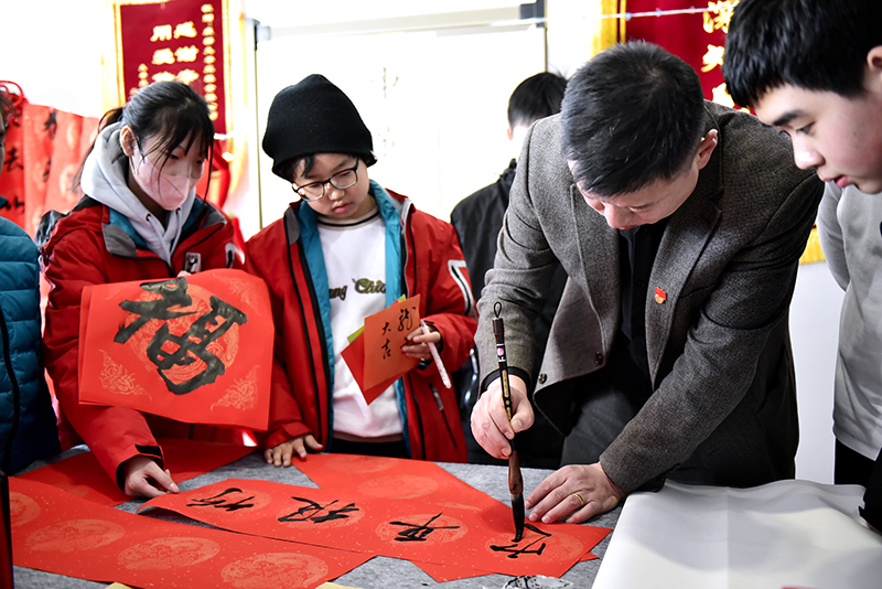 学生们热情洋溢,纷纷拿起毛笔,挥毫泼墨,准备书写对联。活动现场气氛热烈,同学们的欢声笑语和笔触在纸上跳跃的声音交织在一起,形成了一幅美丽的画卷。经过大家的共同努力,一幅幅精美的对联作品诞生了,这些作品不仅展示了同学们的书法技艺,也传递了他们对新年的美好祝福。
