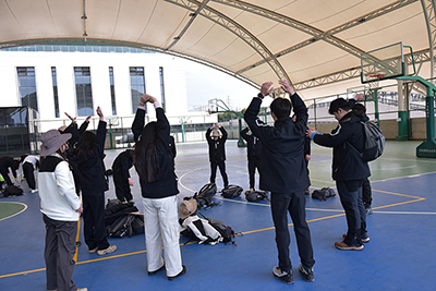 同学们在各班中队长的带领下进行热身及装备检查。他们声音嘹亮,动作整齐,展现出康桥学子最好精神风貌。