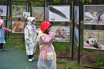 紧接着,我们又在四宝园里发现了新朋友!快看,那是威武的黑熊先生,还有躲在树林里的小浣熊,原来,有这么多有趣的动物都和熊猫做邻居,一起生活在这片绿色的大家庭里呢!同时,小朋友也学习到了保护珍稀动物的重要性。