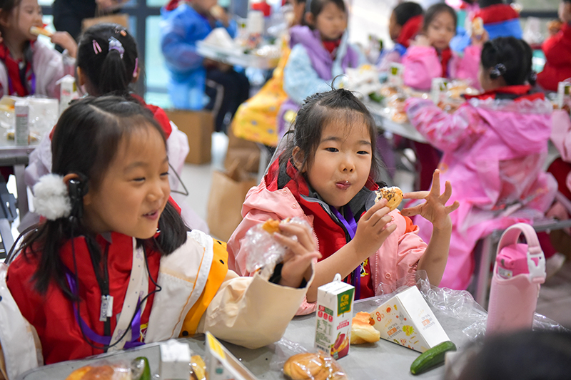 小小探险家们一起快乐午餐、分享美食和趣事的瞬间,为下午的探险补充能量。