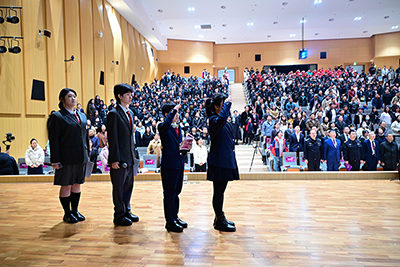 国歌声起,我们怀着激昂的爱国情怀奏唱国歌。