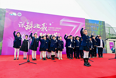 2025年12月6日康桥学校全体师生及家长心手相连、相聚,共同开展主题为“深耕七载,风华正茂,这里有爱,感恩有您爱心义卖嘉年华”校庆活动。